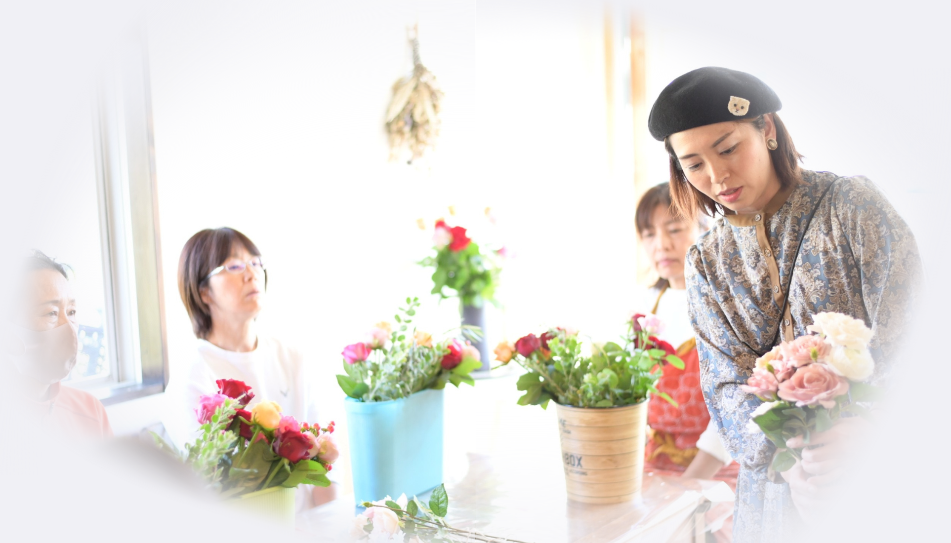 こんにちは。静岡県袋井市、森町、掛川市で、フラワーアレンジメントやいけばなの花の講師をしています。児玉えり子と申します。