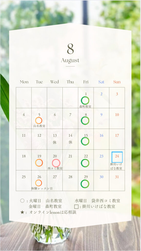 2025年8月のスケジュール